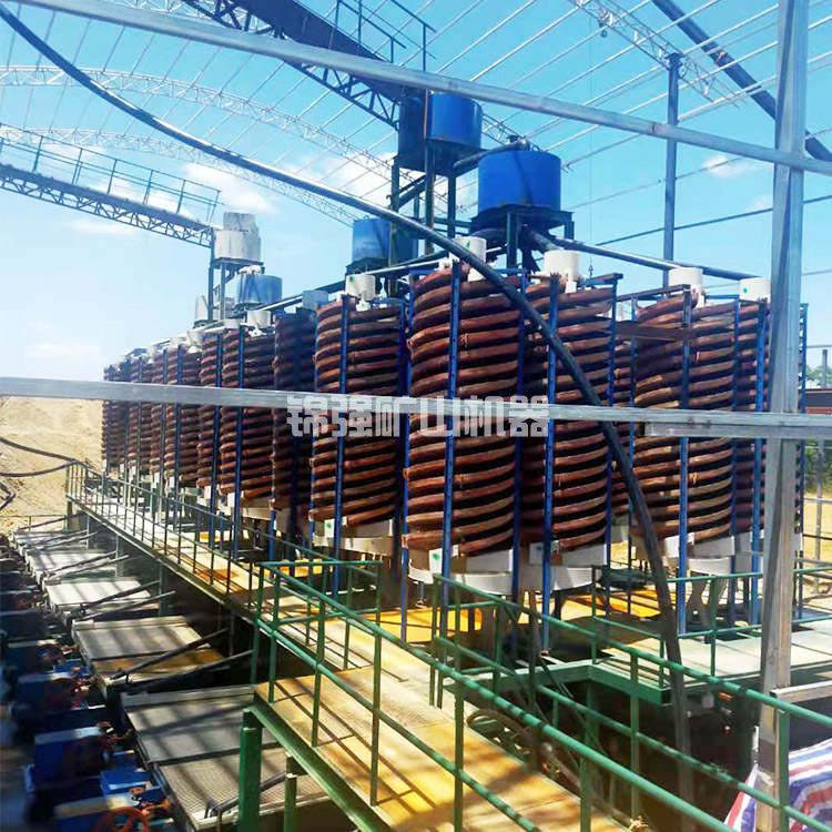 螺旋溜槽在細粒鐵礦分選中的應用螺旋溜槽中的徑向環(huán)流對礦粒群按比重分起著主要作用。離心螺旋溜槽是為了調(diào)節(jié)渦流強度,實現(xiàn)強化分選而增加離心力場的設備。將磁場附加到普通溜槽的槽面上,可以得到磁力螺旋溜槽,這樣可以更有效地回收磁性物料。磁螺旋溜槽回收細粒磁性物料,結(jié)果表明磁螺旋溜槽提高了磁精礦產(chǎn)量,減少了尾礦損失。細粒級螺旋溜槽的特點是類似地毯的絨面選擇,能有效回收0.037~0.01mm細粒級金屬礦物,提高螺旋溜槽的處理能力。新型搖床的處理能力和分選效率不斷提高。螺旋溜槽不斷優(yōu)化結(jié)構參數(shù),同時疊加磁力、離心力、機械振動力等進行強化分選。水力旋流器占地面積小,分級效率高。為了提高分級效率,采用新型耐磨材料,優(yōu)化結(jié)構參數(shù),采用復合力場是旋流器的主要發(fā)展趨勢。離心選礦機采用離心力場,加強分選過程,降低礦物回收粒度下限,逐步實現(xiàn)連續(xù)排礦。